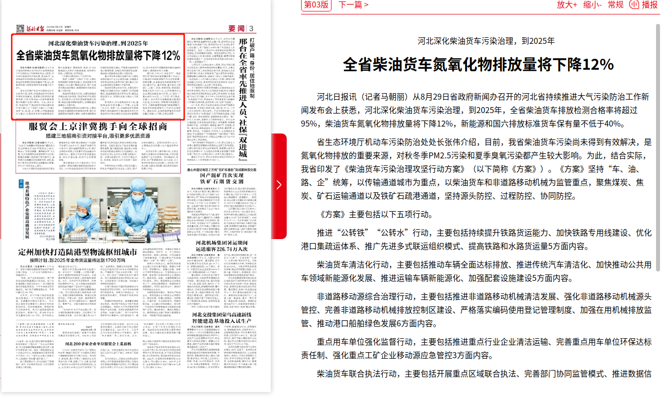河北日报:河北深化柴油货车污染治理,到2025年 全省柴油货车氮氧化物排放量将下降12%