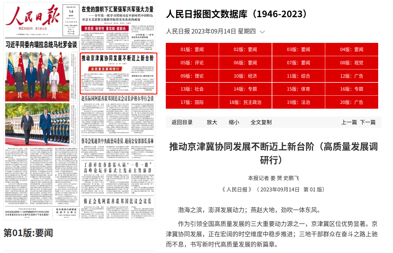 人民日报:推动京津冀协同发展不断迈上新台阶(高质量发展调研行)