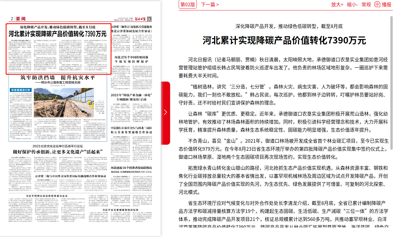 河北日报:深化降碳产品开发,推动绿色低碳转型,截至8月底 河北累计实现降碳产品价值转化7390万元