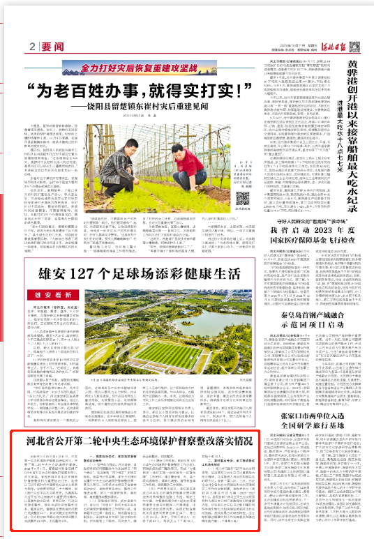 河北日报:河北省公开第二轮中央91直播保护督察整改落实情况