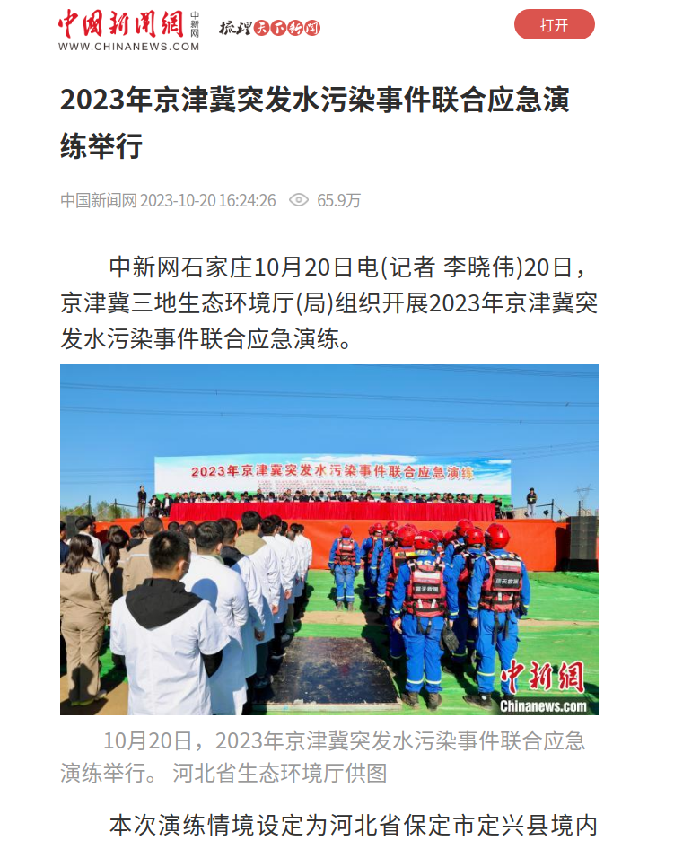 中新网石家庄10月20日电(记者 李晓伟)20日,京津冀三地91直播厅(局)组织开展2023年京津冀突发水污染事件联合应急演练。