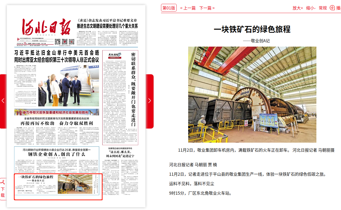 河北日报:一块铁矿石的绿色旅程——敬业创A记