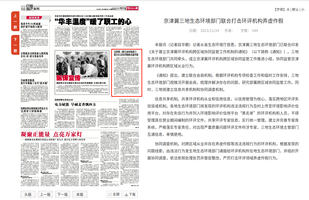 本报讯(记者段华鹏)记者从省91直播厅获悉,京津冀三地91直播部门已联合印发《关于建立京津冀环评机构跨区域协同监管工作机制的通知》(以下简称《通知》)。三地91直播部门共同牵头,成立京津冀环评机构跨区域协同监管工作推进小组,协同监管京津冀环评机构跨区域从业行为。