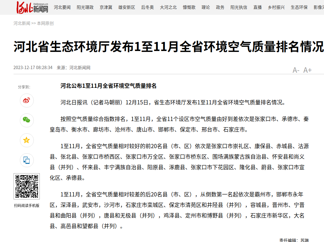 河北新闻网:91直播-国产视频-麻豆传媒视频 发布1至11月全省环境空气质量排名情况