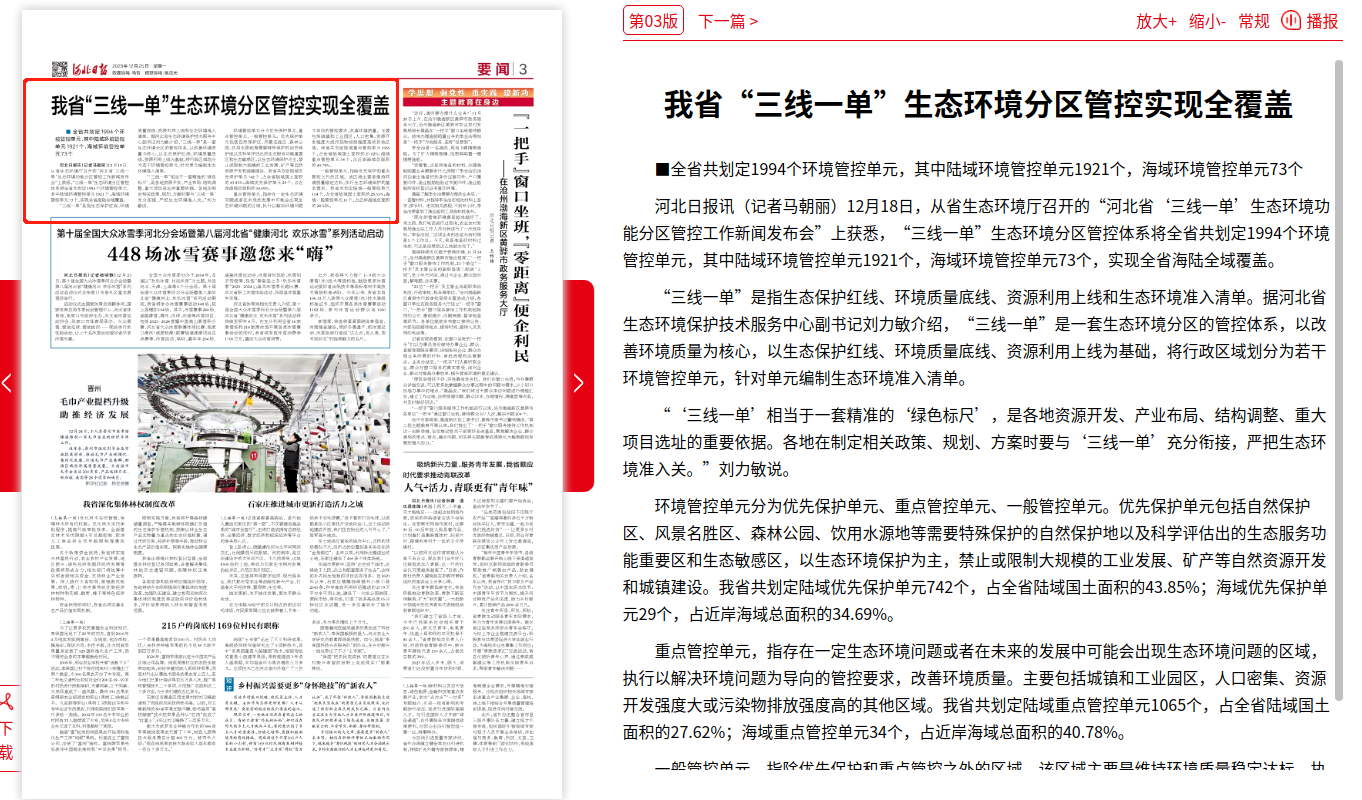 河北日报:我省“三线一单”91直播分区管控实现全覆盖