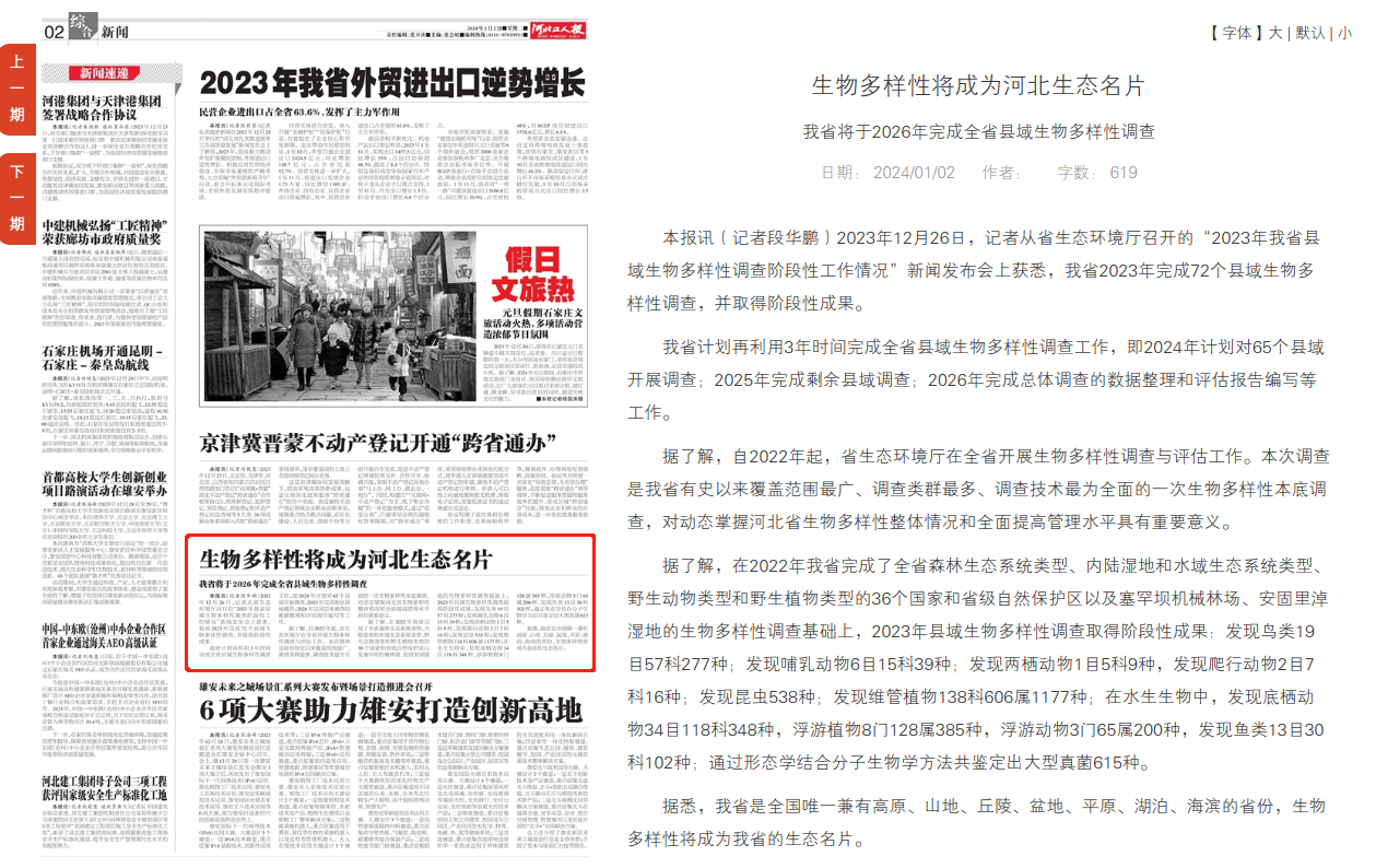 据了解,自2022年起,省91直播厅在全省开展生物多样性调查与评估工作。本次调查是我省有史以来覆盖范围最广、调查类群最多、调查技术最为全面的一次生物多样性本底调查,对动态掌握河北省生物多样性整体情况和全面提高管理水平具有重要意义。