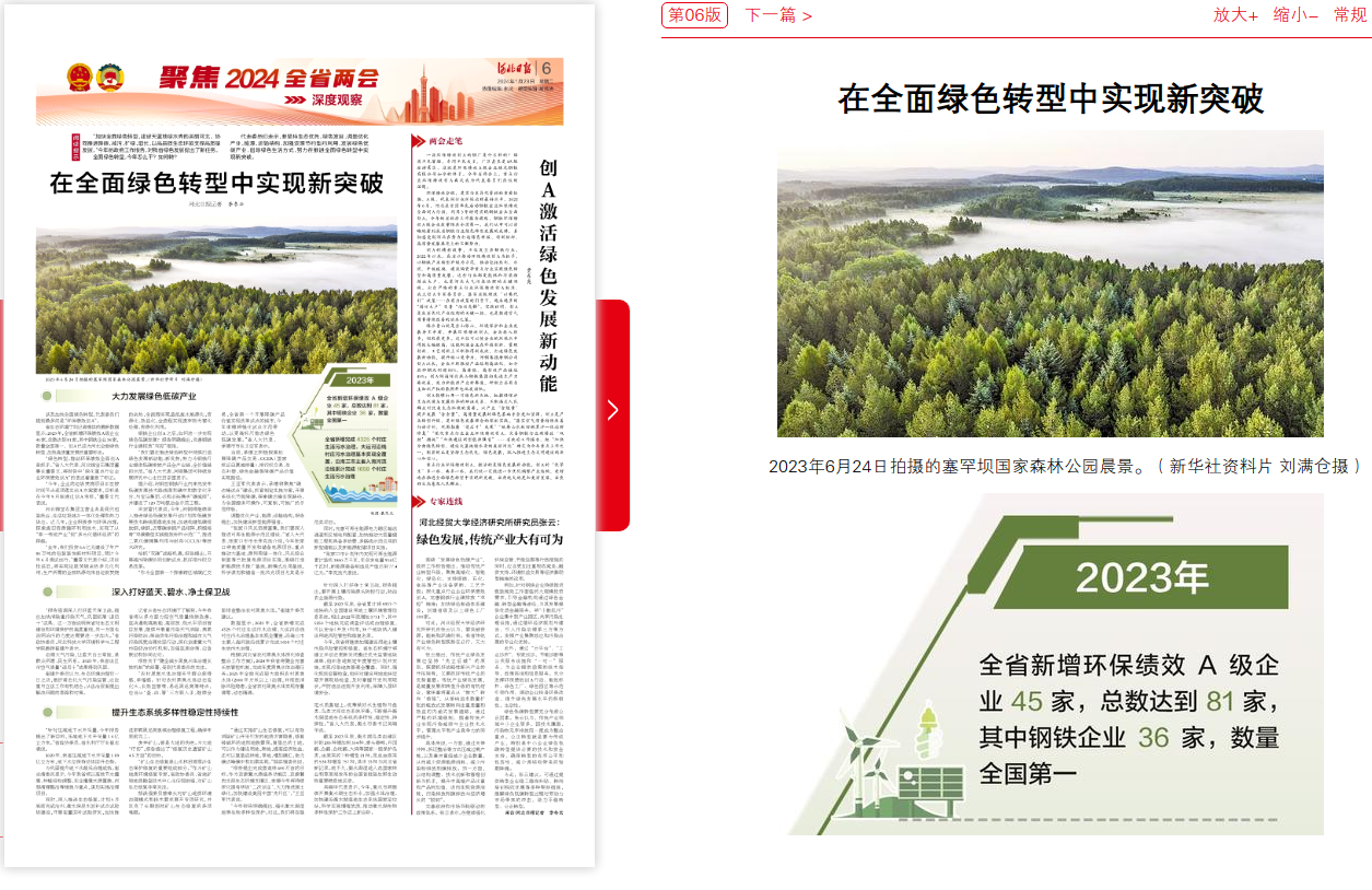 “绿色转型,推动环保绩效全面创A是抓手。”省人大代表、河北锦宝石集团董事长董香文,将报告中“深化重点行业企业环保绩效创A”的表述着重做了标记。