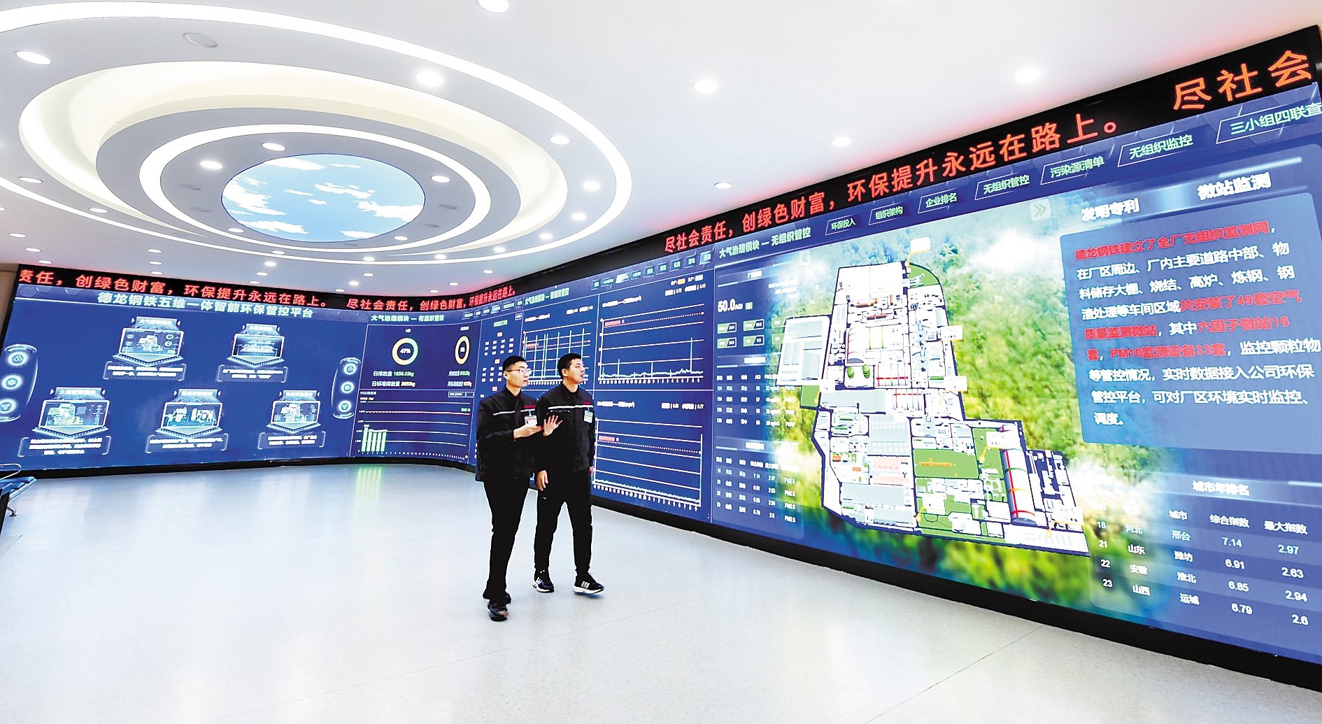 1月6日,德龙钢铁环保部工作人员在“五维一体环保管控中心”工作。(本报资料片)河北日报记者 赵永辉摄