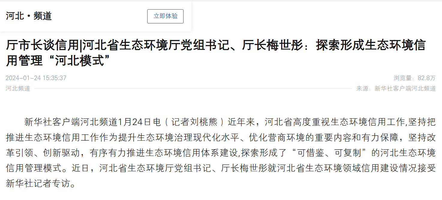 “河北还注重推进信用分级分类监管,对已完成初评的企业及时开展动态信用评价,将企业划分为A、B、C、D、E五个信用级别,对不同级别的企业采取差异化分类监管措施。”梅世彤说,河北探索优化环境信用修复,建立健全环境信用修复“一网通办”机制,优化省91直播行政处罚管理系统,与省市场监督管理局系统同步对接,以数字化赋能信用修复,实现无需企业申请即可自动完成信用修复,为企业提供高效便捷的信用修复服务。