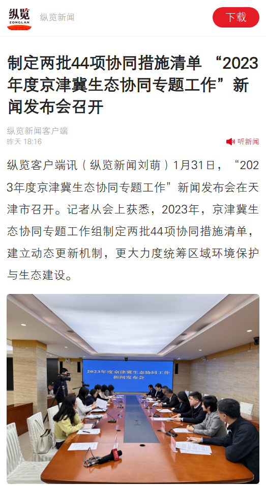 河北新闻网·纵览新闻客户端:制定两批44项协同措施清单 “2023年度京津冀生态协同专题工作”新闻发布会召开