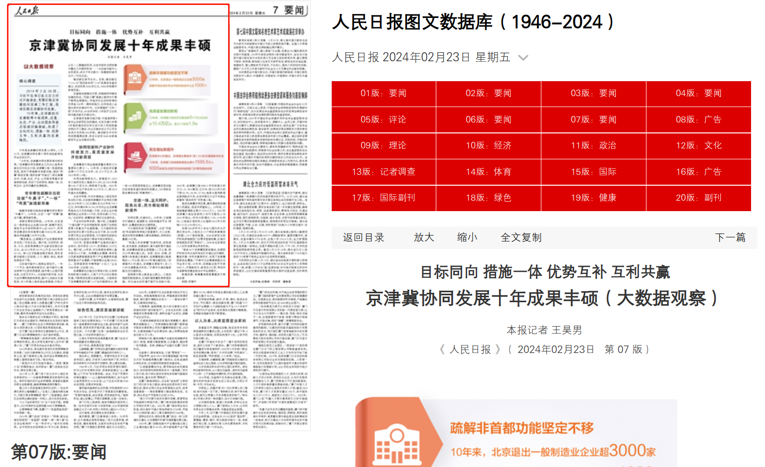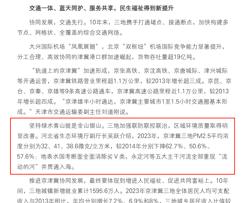 人民日报 :目标同向 措施一体 优势互补 互利共赢 京津冀协同发展十年成果丰硕