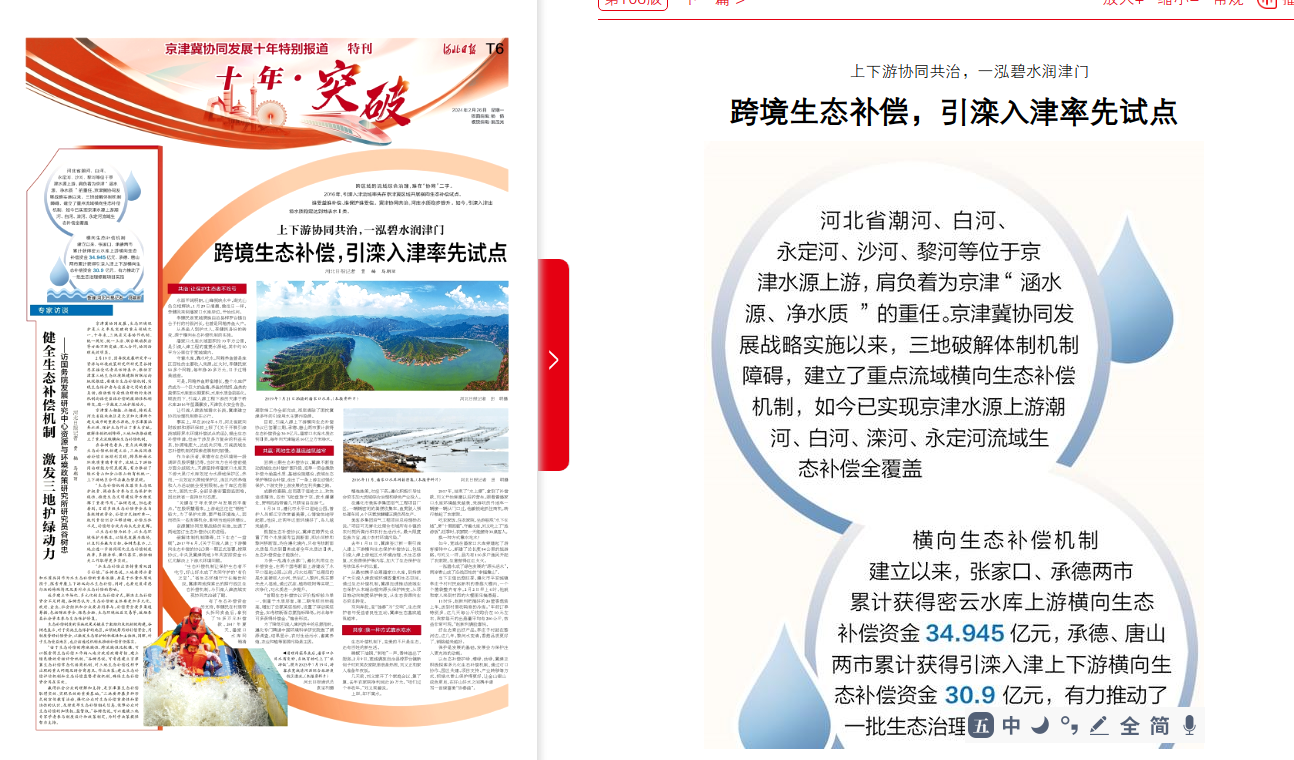河北日报:上下游协同共治,一泓碧水润津门 跨境生态补偿,引滦入津率先试点