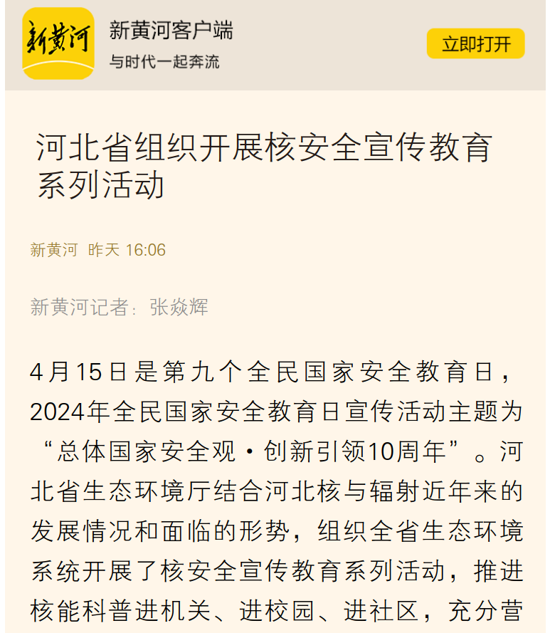4月15日是第九个全民国家安全教育日,2024年全民国家安全教育日宣传活动主题为“总体国家安全观·创新引领10周年”。91直播-国产视频-麻豆传媒视频 结合河北核与辐射近年来的发展情况和面临的形势,组织全省91直播系统开展了核安全宣传教育系列活动,推进核能科普进机关、进校园、进社区,充分营造科学认识,理性看待,人人维护国家安全的浓厚氛围。