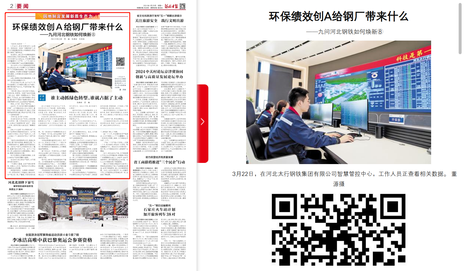 姚菲的回答让记者感触颇深:生态环保是本大账、长远账、综合账。绿色转型,谁主动抓,谁就占据了主动。钢铁企业要将绿色转型进行到底,不断培育新质生产力。