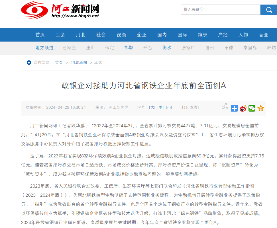 河工新闻网:政银企对接助力河北省钢铁企业年底前全面创A
