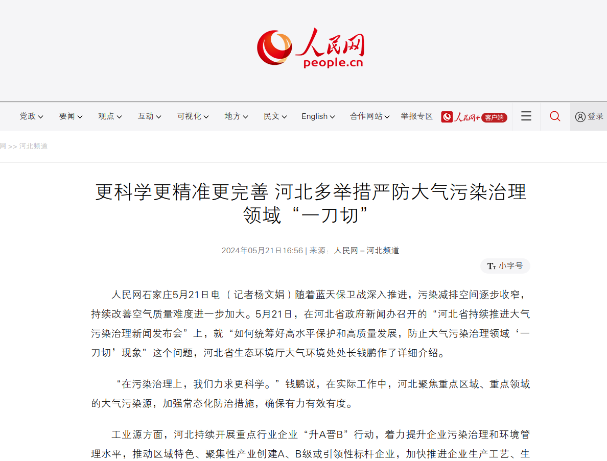 人民网:更科学更精准更完善 河北多举措严防大气污染治理领域“一刀切”