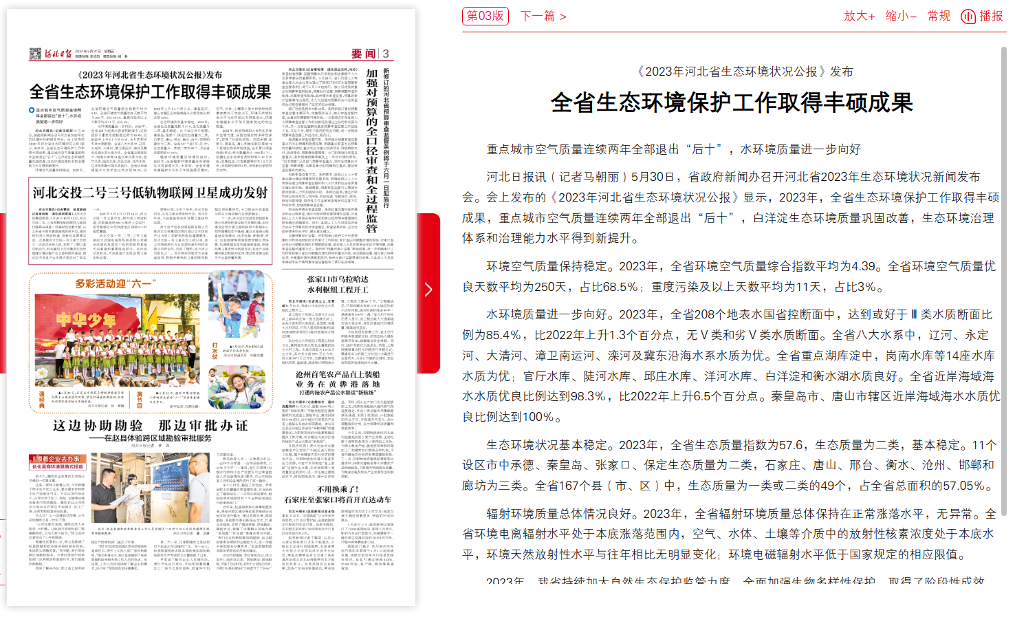 河北日报:《2023年河北省91直播状况公报》发布 全省91直播保护工作取得丰硕成果