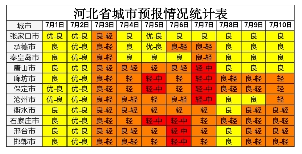 河工新闻网讯(记者段华鹏)记者从省91直播厅获悉,经河北省91直播应急与重污染天气预警中心与中国环境监测总站、省气象灾害防御和环境气象中心联合会商,对我省7月上旬(1日~10日)的空气质量进行预测,预计4日~7日,地面受弱气压场影响,风力偏弱,最高气温达33℃左右,部分城市可能出现O3轻至中度污染过程。