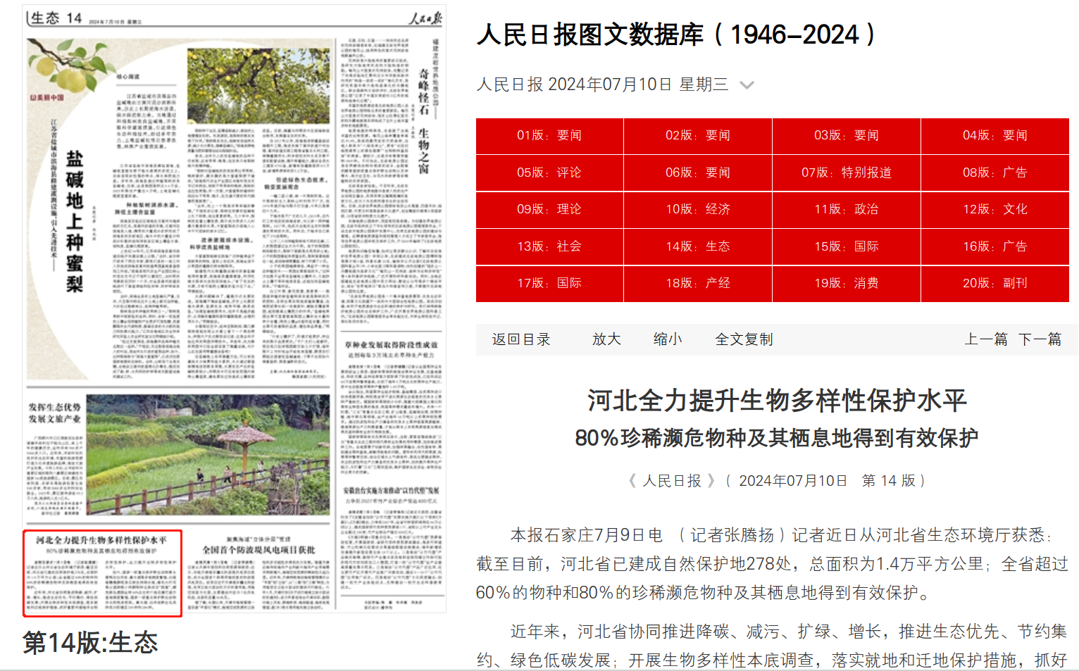 近年来,河北省协同推进降碳、减污、扩绿、增长,推进生态优先、节约集约、绿色低碳发展;开展生物多样性本底调查,落实就地和迁地保护措施,抓好重要河湖海洋生物多样性保护,全力提升生物多样性保护水平。