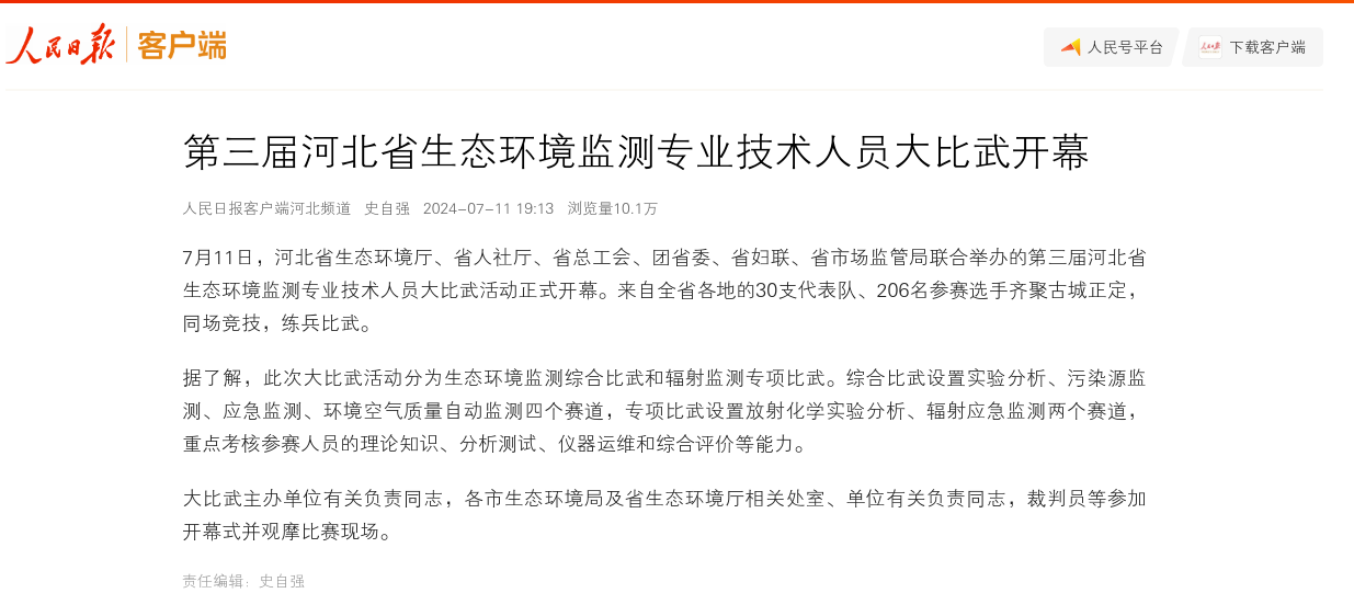 人民日报客户端:第三届河北省91直播监测专业技术人员大比武开幕