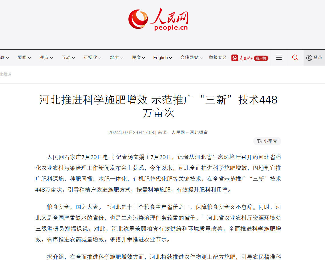 人民网:河北推进科学施肥增效 示范推广“三新”技术448万亩次