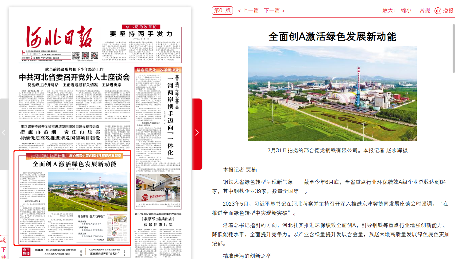 用高水平环保绩效管理推动钢铁企业转型升级、绿色发展,2022年6月,河北在全国率先启动钢铁企业环保绩效全面创A行动,带动钢铁大省“绿色突围”。
