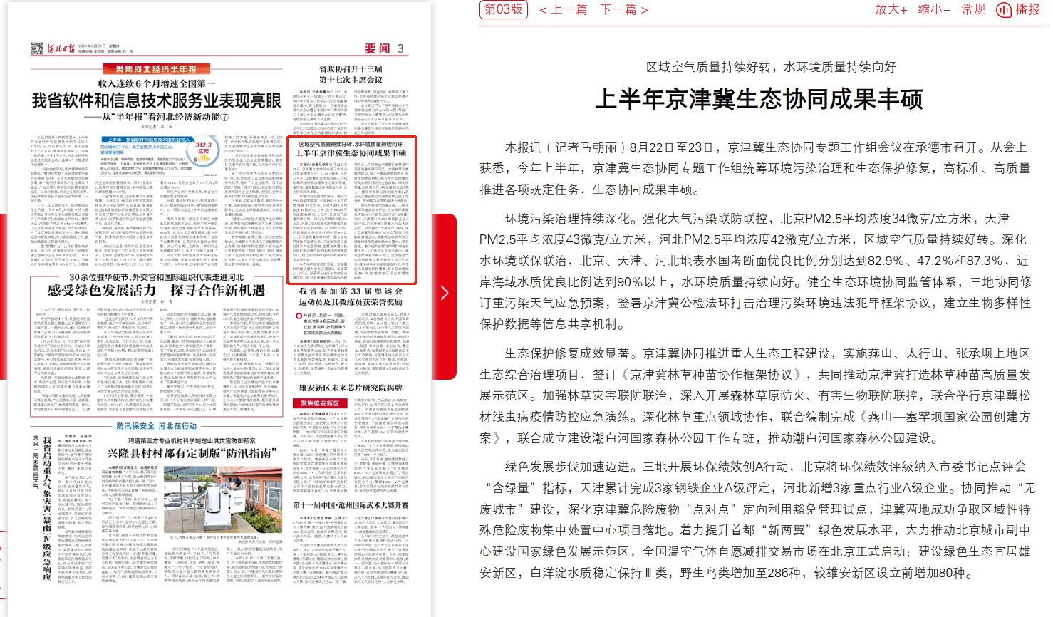河北日报:区域空气质量持续好转,水环境质量持续向好 上半年京津冀生态协同成果丰硕