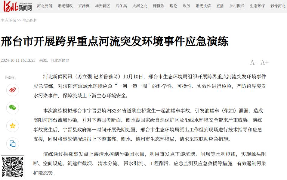 河北新闻网:邢台市开展跨界重点河流突发环境事件应急演练