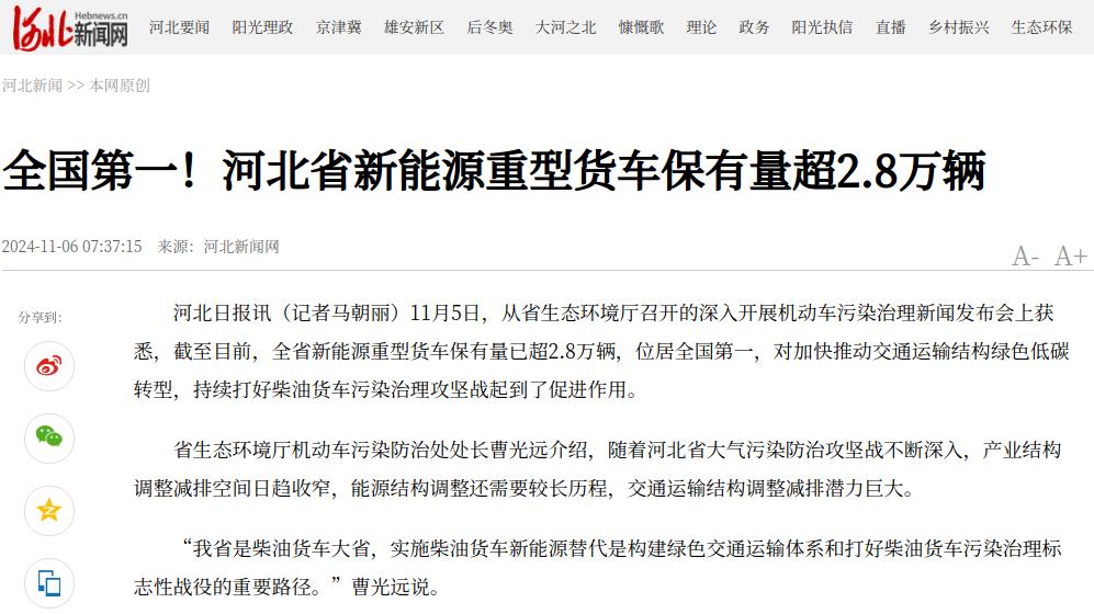 河北新闻网:全国第一!河北省新能源重型货车保有量超2.8万辆