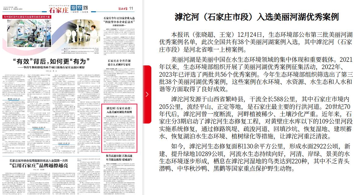 河北日报:滹沱河(石家庄市段)入选美丽河湖优秀案例