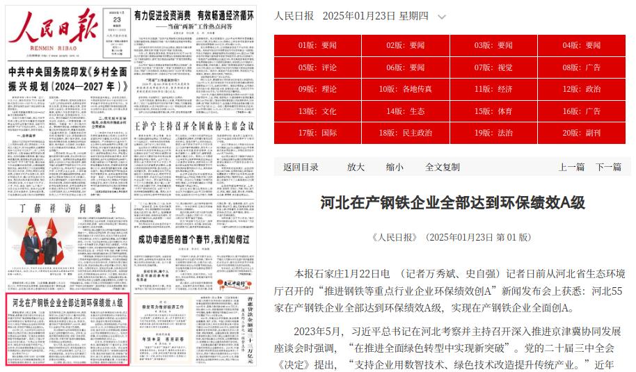 人民日报:河北在产钢铁企业全部达到环保绩效A级