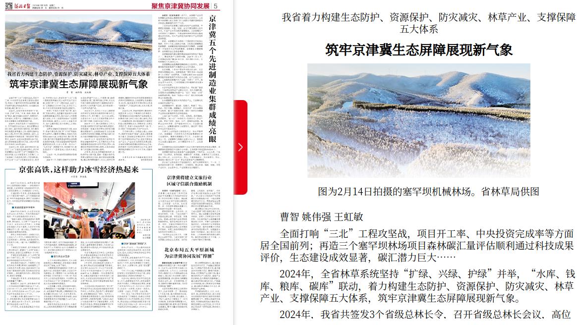 河北日报:我省着力构建生态防护、资源保护、防灾减灾、林草产业、支撑保障五大体系 筑牢京津冀生态屏障展现新气象