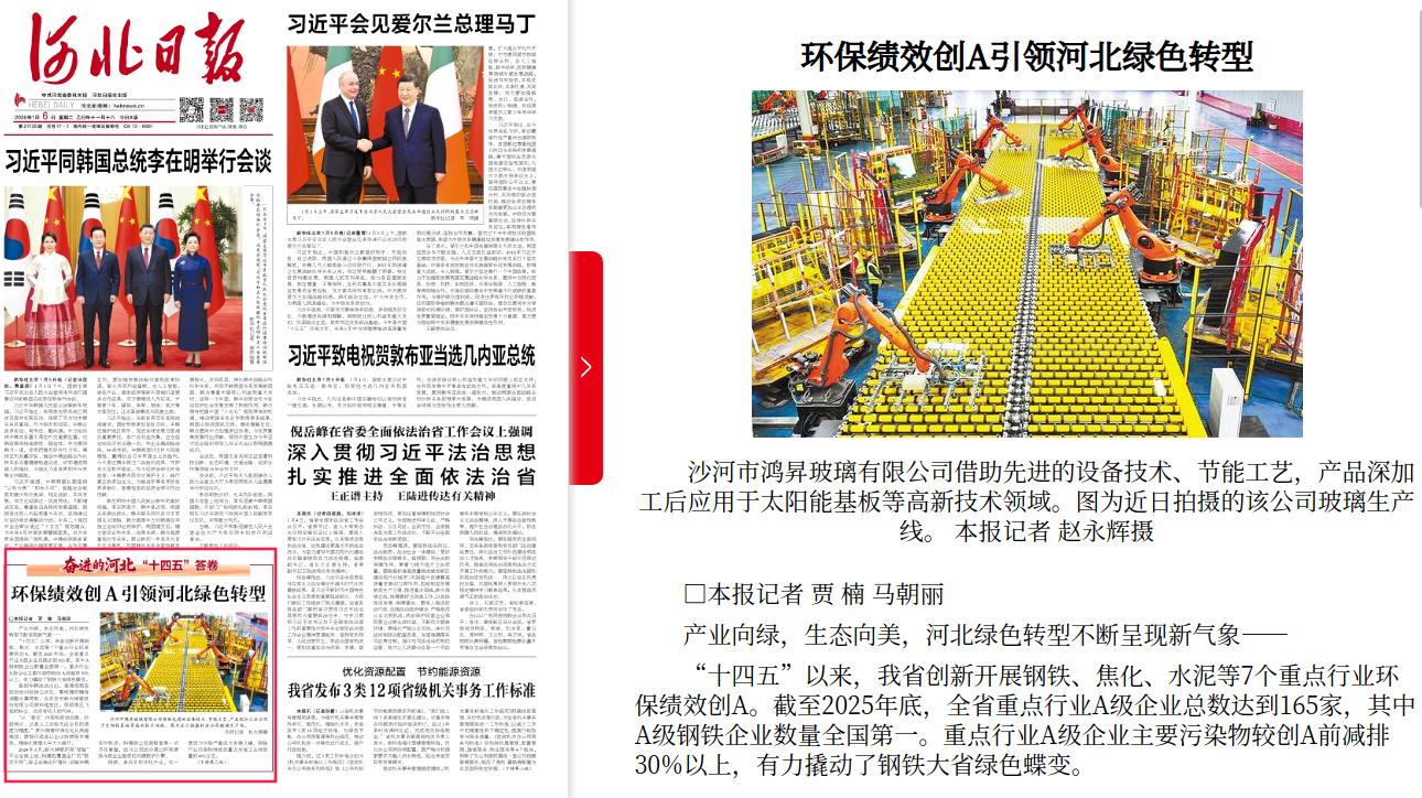 河北太行钢铁集团有限公司累计开发出20多种精品钢,销售额占到全厂总销售额的五成以上,2025年再度入围中国民营企业500强榜单;国家能源集团滦河热电有限公司在承德市率先完成创A,实现粉煤灰、炉渣等100%综合利用;沙河市鸿昇玻璃有限公司借助先进的设备技术、节能工艺,产品深加工后应用于太阳能基板等高新技术领域……