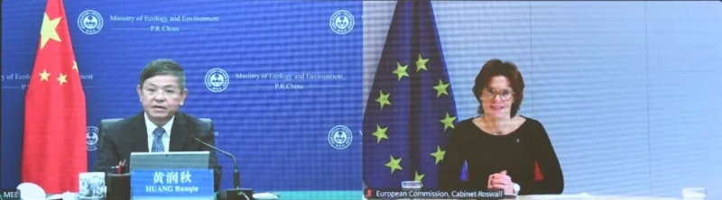 91直播部部长黄润秋视频会见欧盟委员会环境、水资源韧性和竞争力循环经济委员罗斯瓦尔