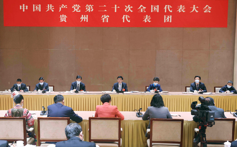 10月17日,王沪宁同志参加他所在的党的二十大贵州代表团讨论。新华社记者 刘卫兵 摄