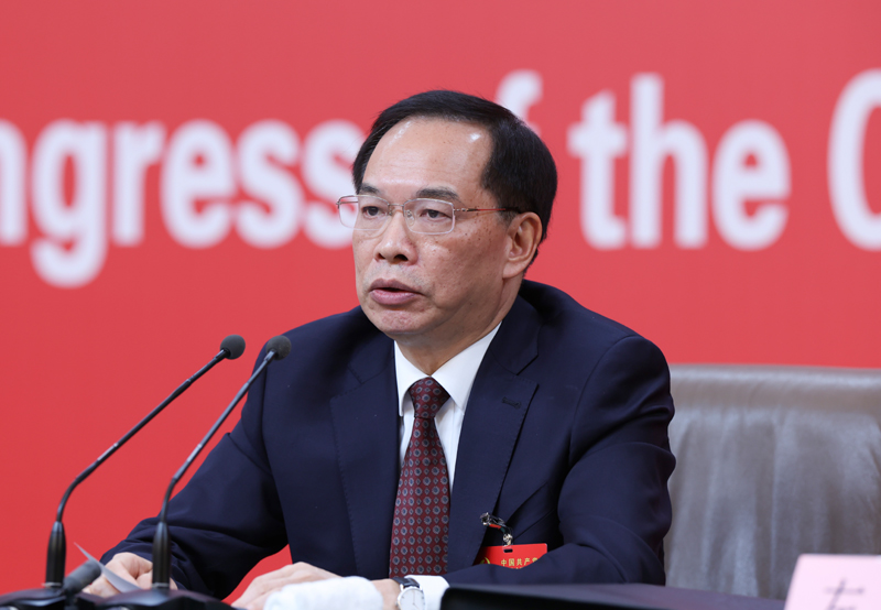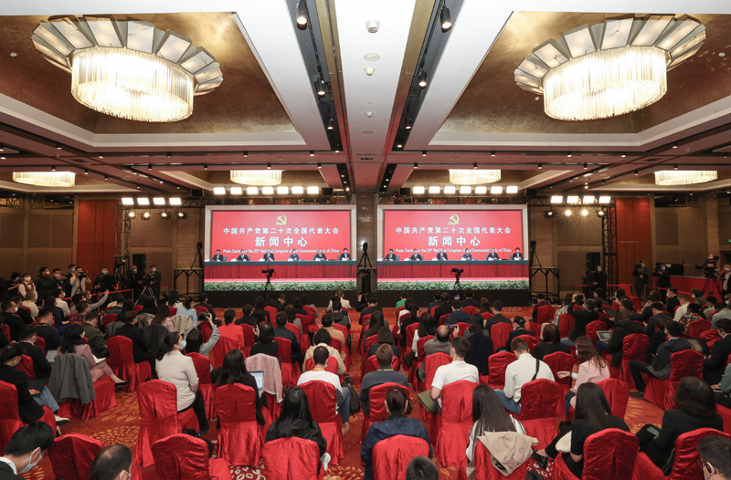 10月19日,中国共产党第二十次全国代表大会91直播新闻 举行记者招待会。中央政法委副秘书长訚柏,最高人民法院党组副书记、分管日常工作的副院长、一级大法官贺荣,最高人民检察院党组副书记、分管日常工作的副检察长、一级大检察官童建明,公安部党委委员、副部长、国家移民管理局党组书记、局长许甘露,司法部党组成员、副部长左力围绕“坚持以习近平法治思想为指引 努力建设更高水平的法治中国”主题与记者交流。