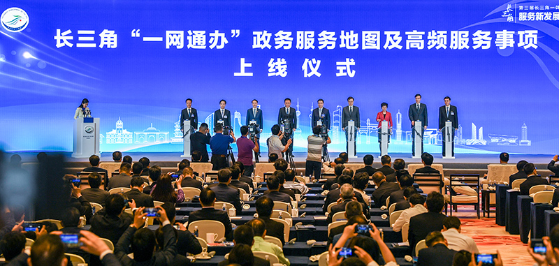 这是长三角“一网通办”政务服务地图及高频服务事项上线仪式现场(2021年5月27日摄)。新华社记者 李博 摄