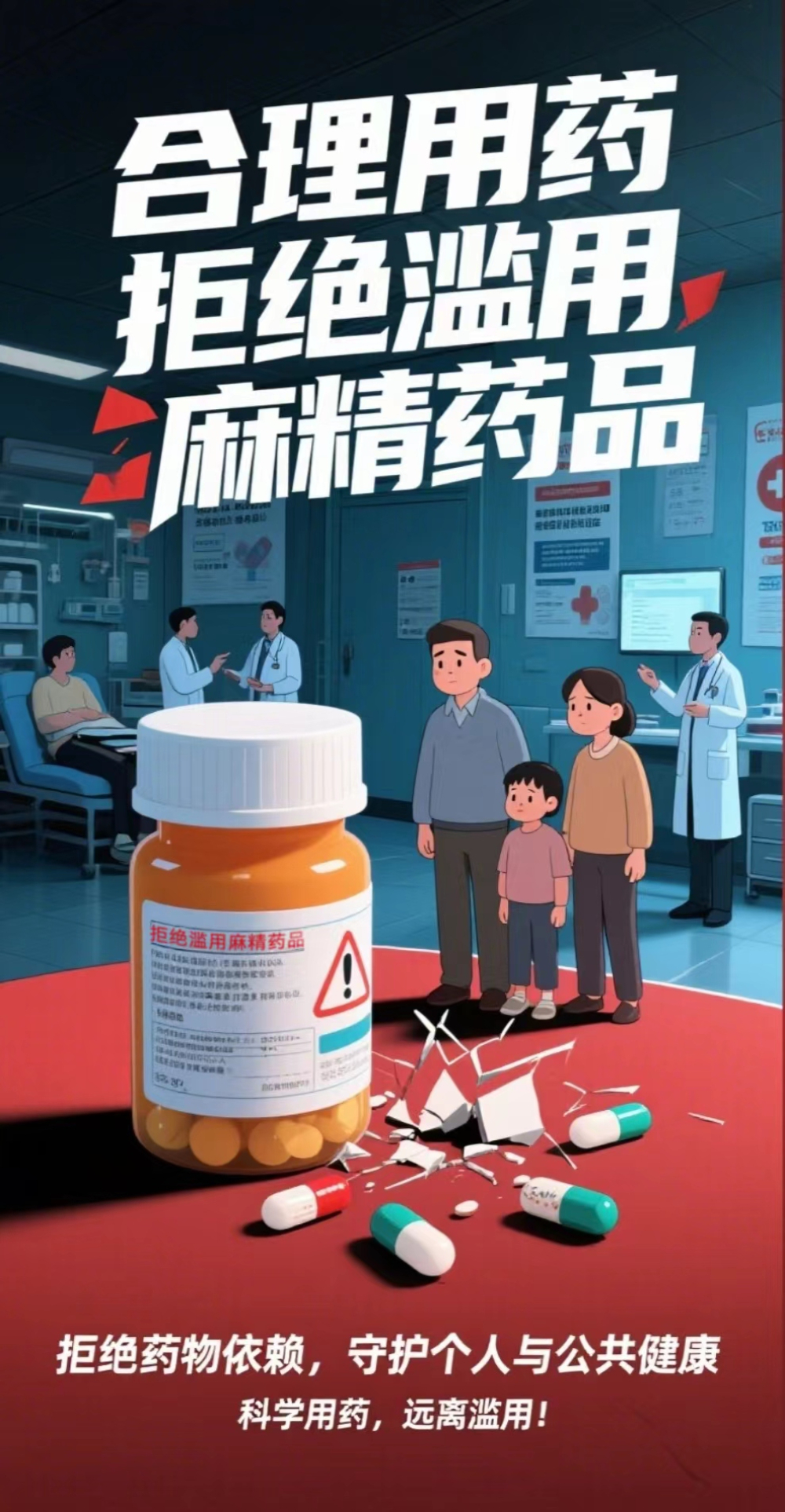“全国禁毒宣传短视频和公益海报征集”作品展播:海报《合理用药,拒绝滥用麻精药品》