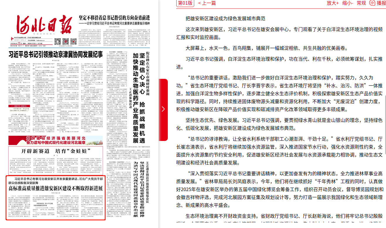 河北日报:高标准高质量推进雄安新区建设不断取得新进展