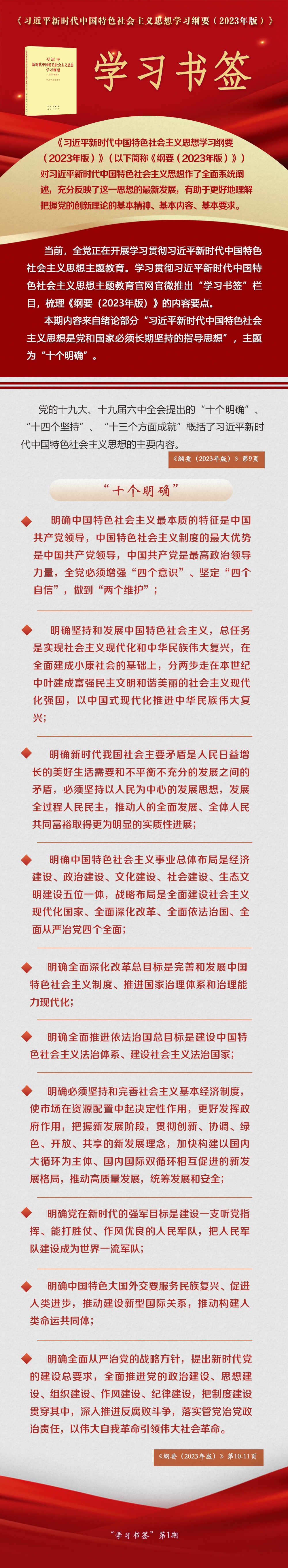 《习近平新时代中国特色社会主义思想学习纲要(2023年版)》 学习书签丨“十个明确” 来源:人民网-中国共产党新闻网 时间:2023-08-18