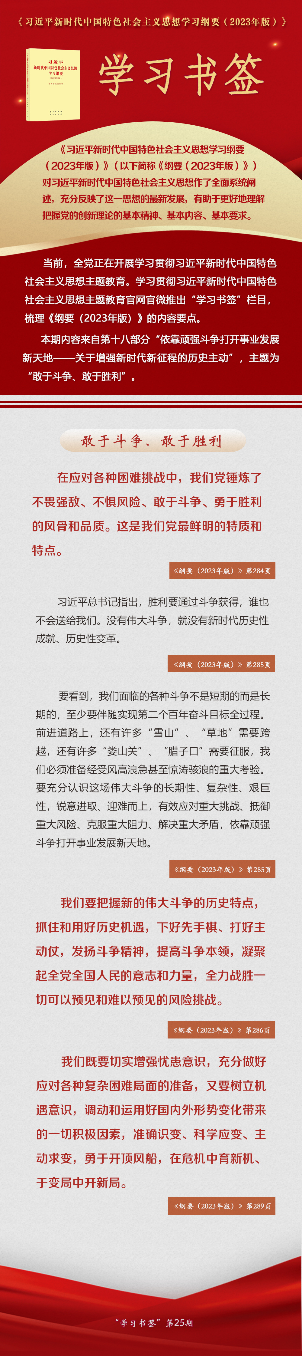 《习近平新时代中国特色社会主义思想学习纲要(2023年版)》 学习书签丨敢于斗争、敢于胜利 来源:人民网-中国共产党新闻网 时间:2024-01-10