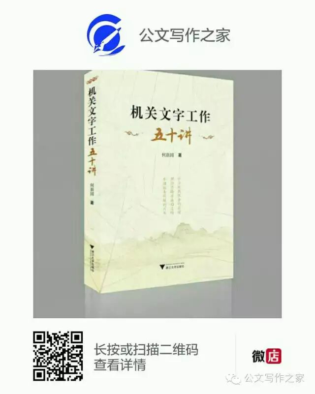 不揣浅陋,匆匆着笔,寥寥数语,几点感受,挂一漏万,实难言书中之大美、书中之真味、书中之大用。一本被高层领导肯定、专家学者评定、普通读者认定的好书,岂能有差中国公文写作研究会会长桂维民先生在本书序言最后指出,“对于本书的丰富内容,以及蕴藏于字里行间的真情实感,尤其是作者的心路历程和治学精神,只能留给广大读者去心领而神会了。”这里把桂会长的意见发挥一下,吁请机关企事业单位广大文字工作者抓紧时间直接去读原著吧!