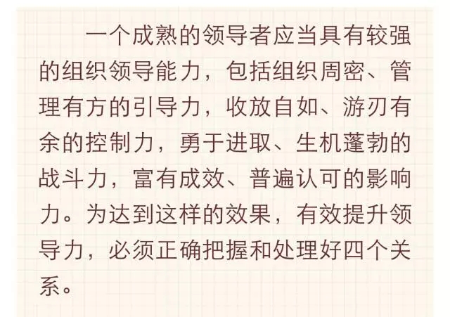 提升领导力需把握好的四个关系 来源: 时间:2017-08-03