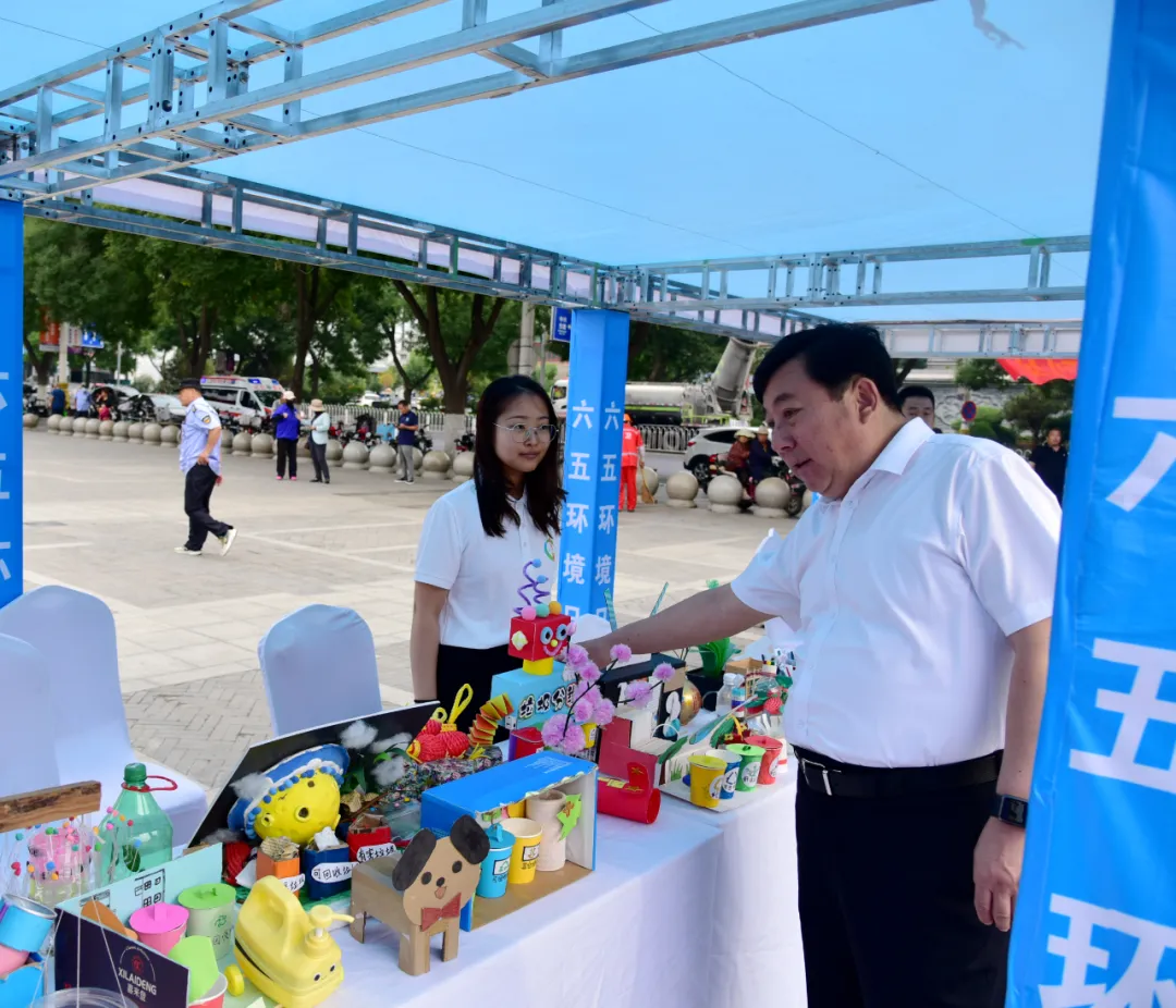 随后市领导一行参加了环保签名,参观了环保重点工作展、环保法律法规展、重点企业治理成果展、生态环保主题作品展等展区。