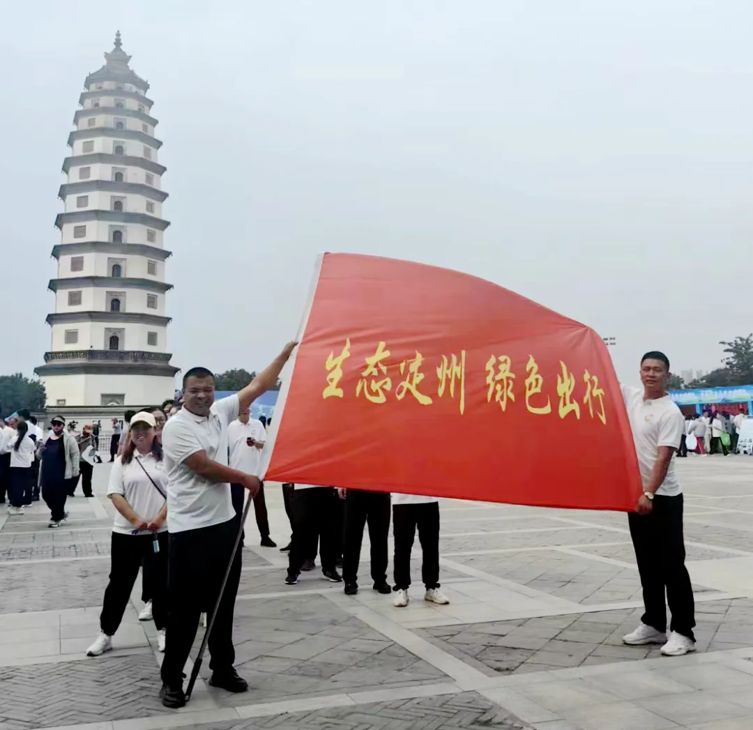 “生态定州、绿色出行”的红旗,统一的主题文化衫,精神抖擞的队伍,他们用脚步集聚定州“绿色能量”,播洒生态“种子”,用自己的行动呼吁大家共同爱护环境,践行低碳环保,保卫定州蓝天白云。