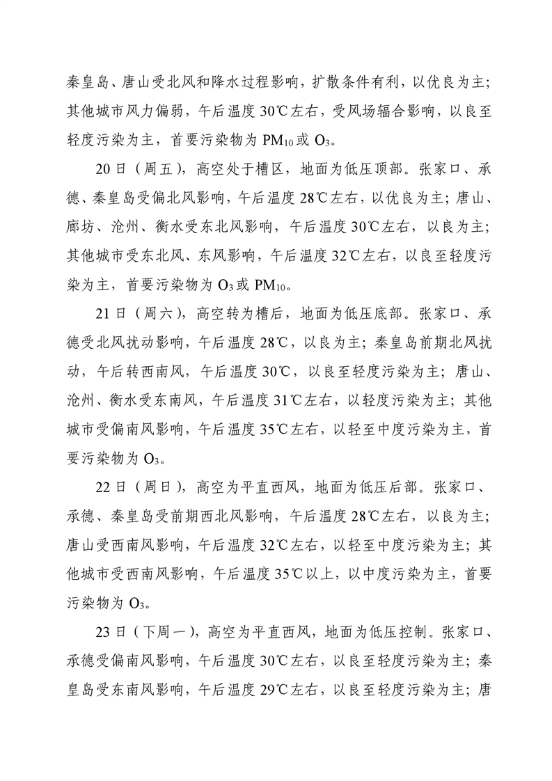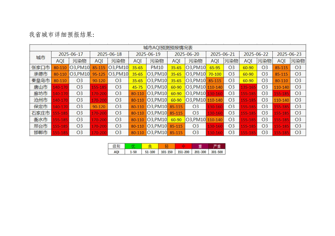 河北省空气质量预测报告周报2025年第25周