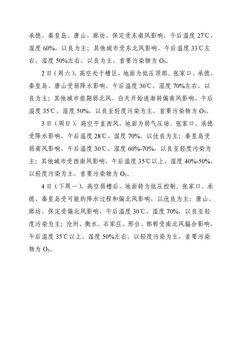 河北省空气质量预测报告(周报)2025年第30周