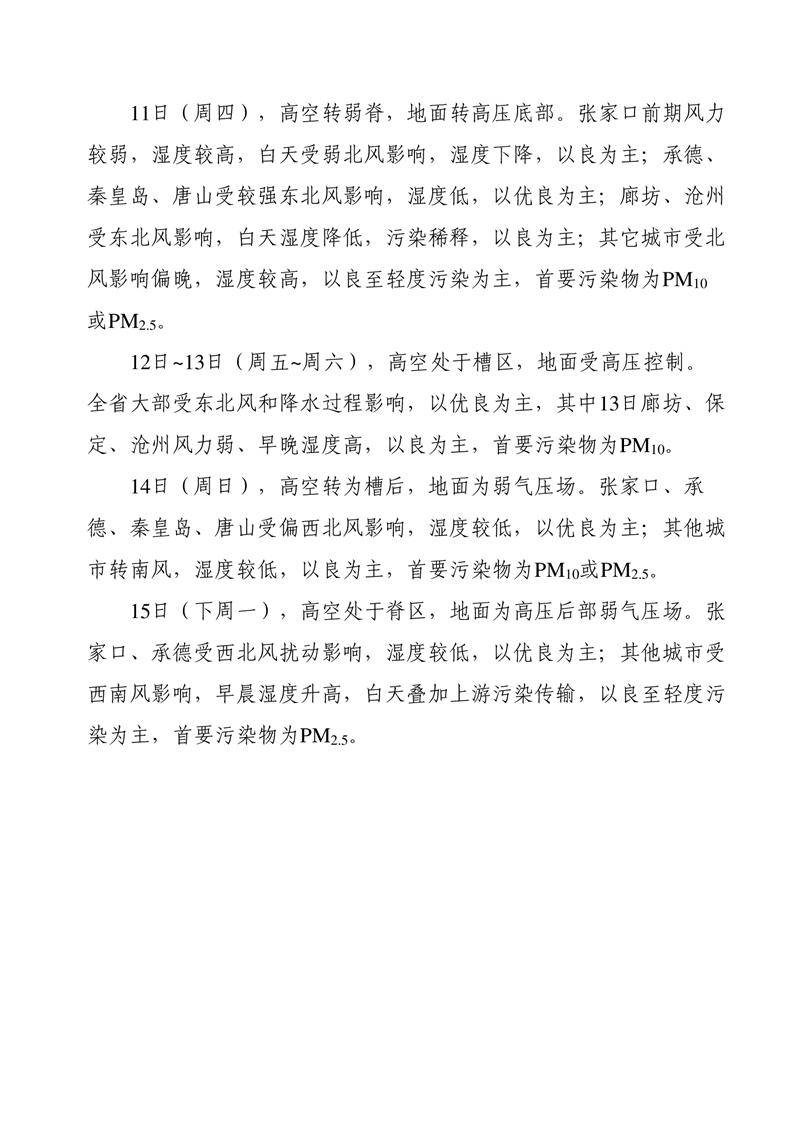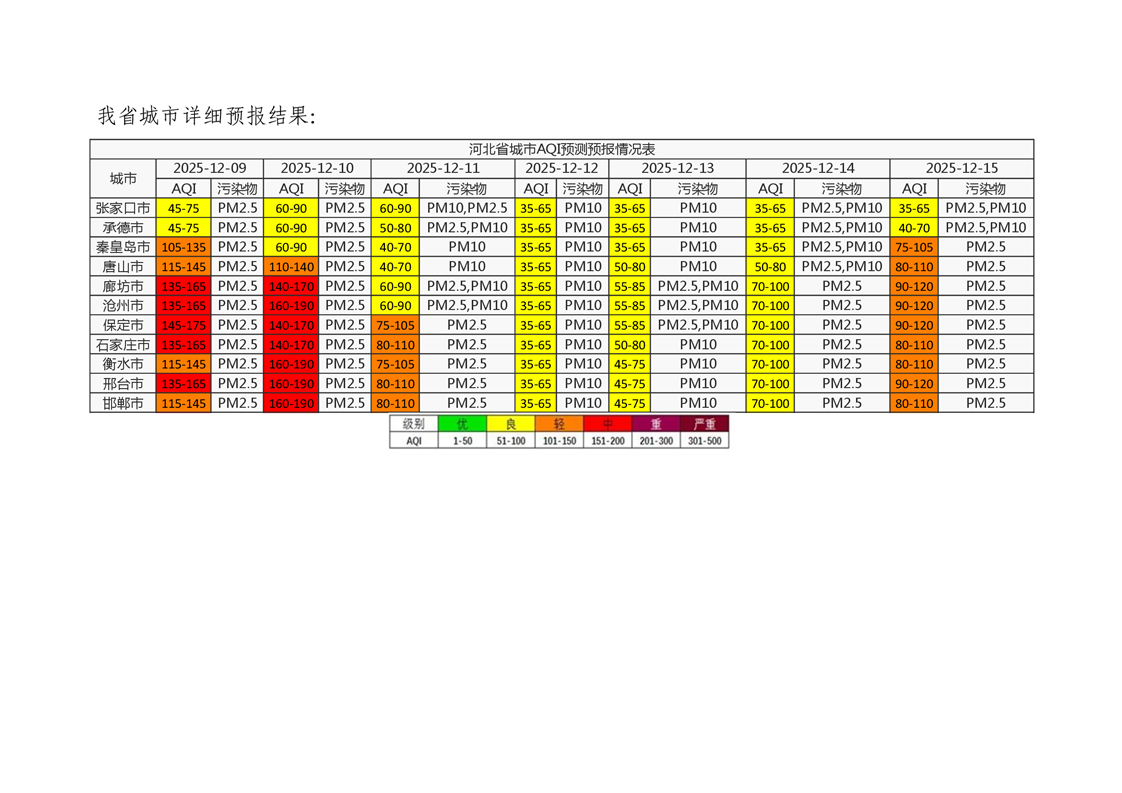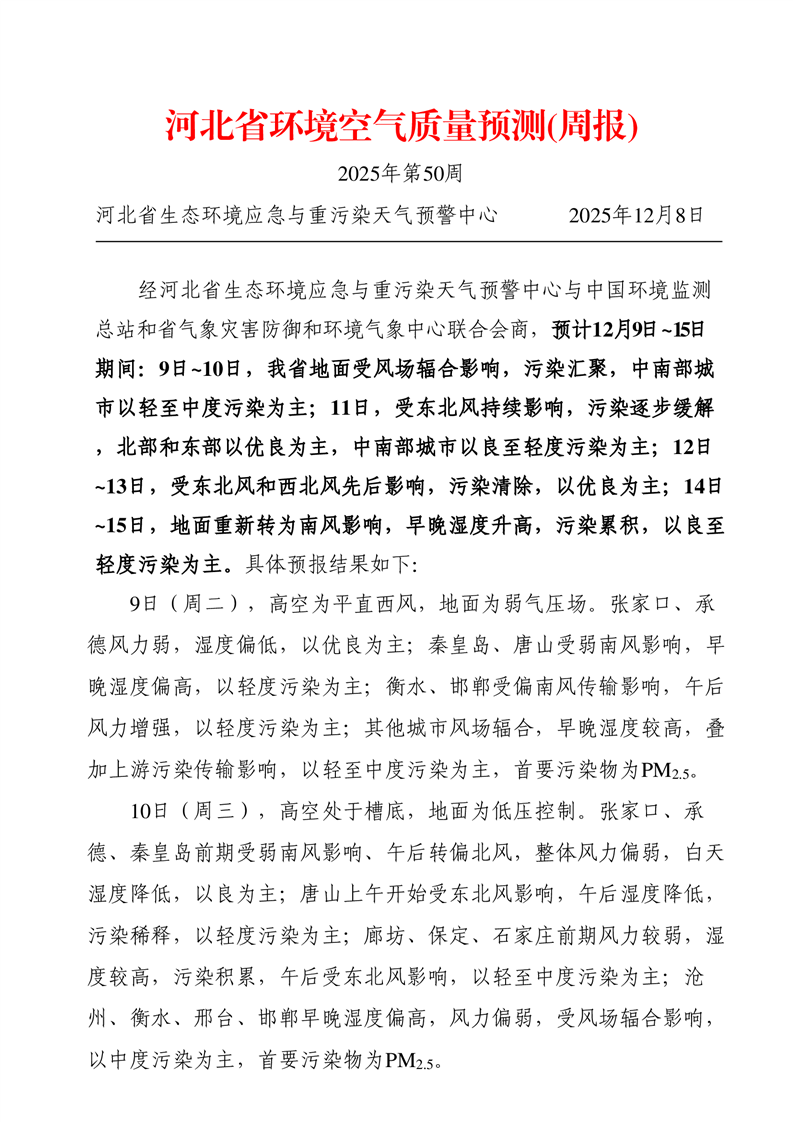 河北省空气质量预测报告周报2025年第50周